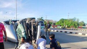 ไปไม่ถึงโรงพยาบาล! รถตู้ 10 ชีวิตชน 6 ล้อขณะยูเทิร์น ดับ 1 เจ็บระนาว